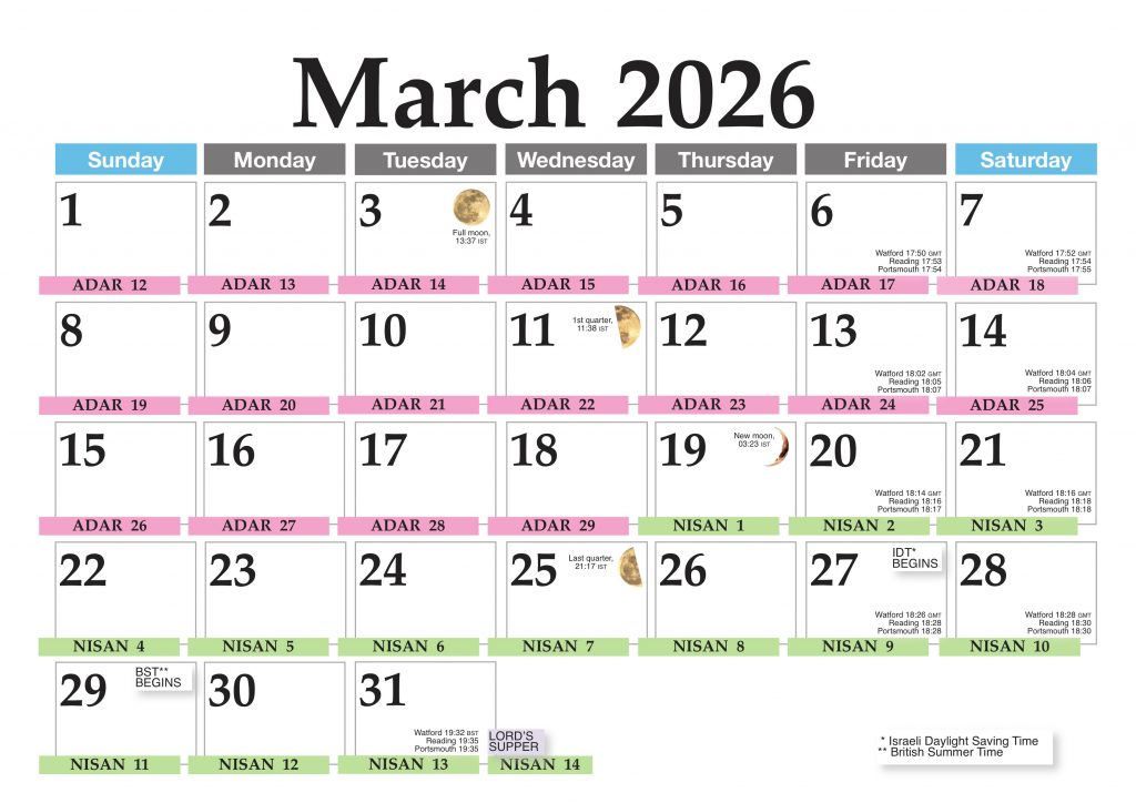 We are used to using the Roman Calendar, with it’s January and February etc. But are you used to God’s own calendar? When the Bible talks about Nisan we need to check that Nisan is legitimate. That’s what this page is all about. Remember, each day begins and ends at sunset.